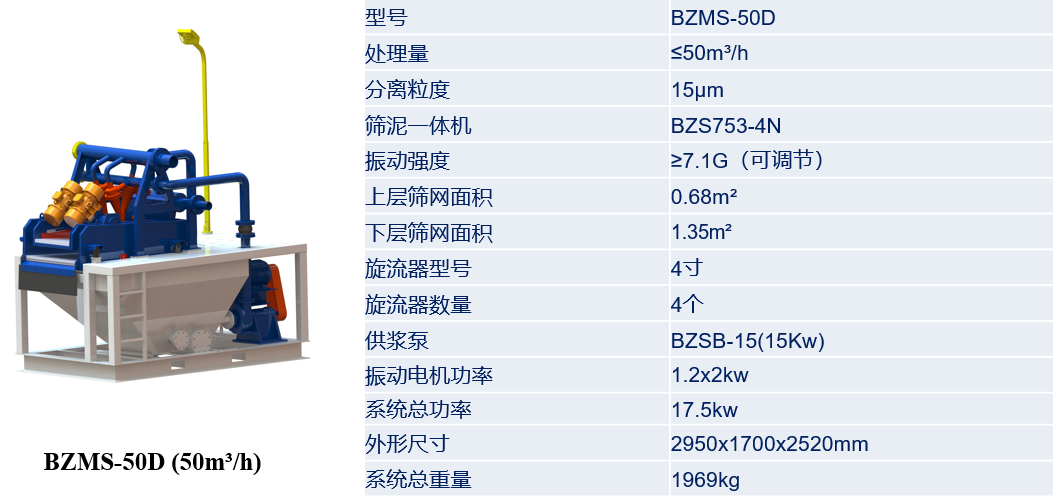 BZMS經(jīng)濟(jì)型泥漿回收系統(tǒng)參數(shù)