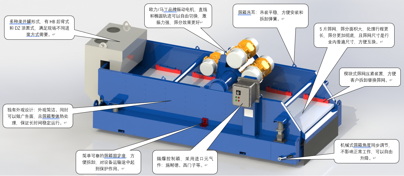 1.激振強(qiáng)度高達(dá)8.0G,而且可以調(diào)節(jié),能夠有效的干燥鉆屑;